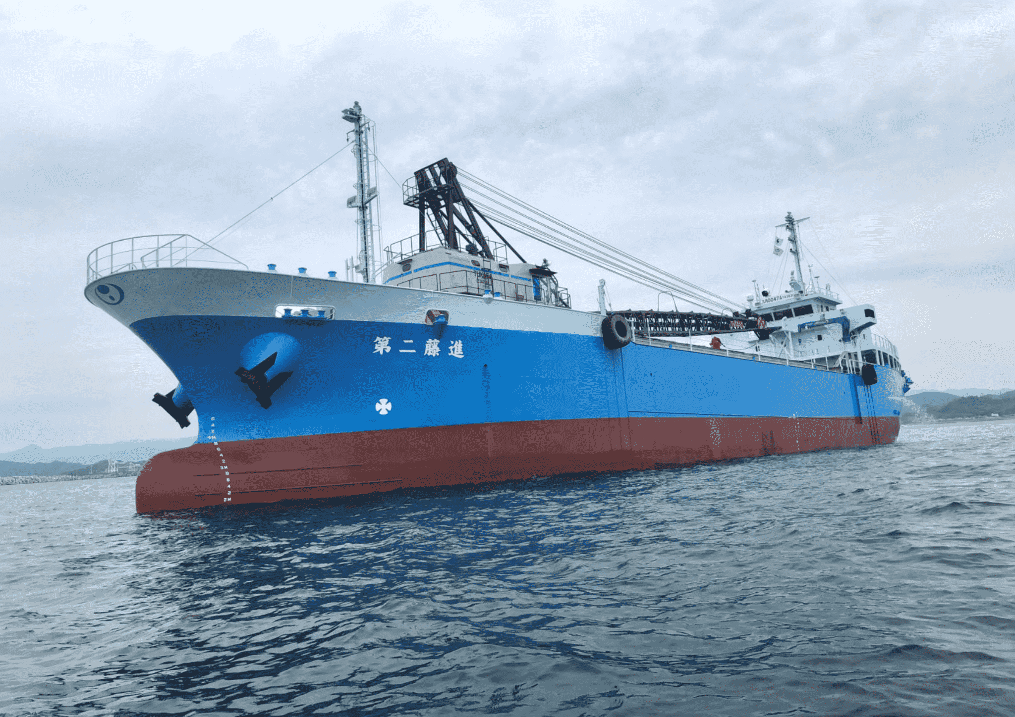 自社ガット船8隻体制と用船13隻合計21隻体制で運航中。日本全国の捨石、各種骨材、残土、土石等の海上運搬を行っております。また今後4隻の新造船を計画しています。ガット船未経験からの船員も多い会社です。